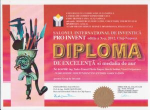 Al treilea prototip perfecționat în 10 ani de Asociația Inventatorilor Independenți (membru IFIA),Diplome de Excelenta Universitati cu Medalii de AUR, distincții internaționale.
