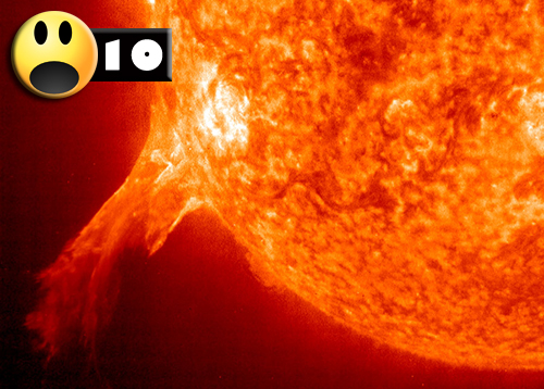 Soarele nu va scoate spre noi o limba de foc care sa strabata cei 152 milioane de kilometri care ne despart de el. Cea mai puternica explozie solara inregistrata pana in prezent s-a petrecut pe data de 4 noiembrie 2003, cand cateva miliarde de tone de plasma au explodat in directia Terrei. Radiatiile X care s-au lovit de atmosfera care protejeaza Pamantul au avut atunci intensitatea radiatiei a 5.000 de sori. Cu toate acestea, inca misunam bine-mersi pe planeta…