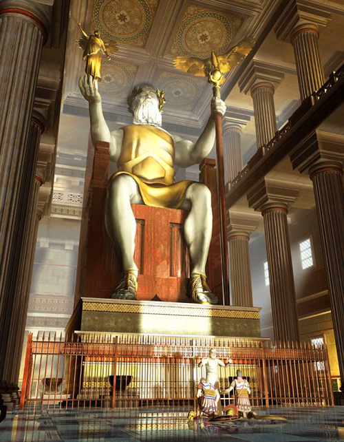In 441 i.Hr., in sudul Greciei, la Olimpia, intr-un templu enorm, sculptorul Fidias isi incepea lucrul la ceea ce avea sa devina, din anul 433 i.Hr., cea mai inalta (13 m) si cunoscuta statuie a lui Zeus. Conform expertilor, daca statuia ar fi fost sculptata astazi, intreaga manopera ar fi costat in jur de 50 de milioane de dolari.