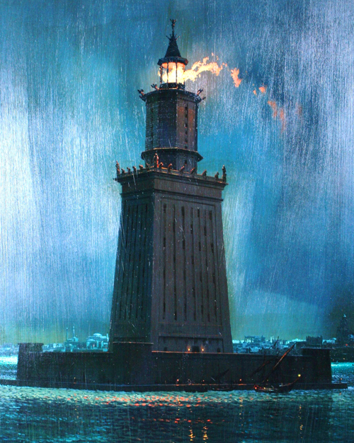 In anul 332 i.Hr., intr-un satuc de pescari, Alexandru cel Mare fonda orasul Alexandria. Dezvoltarea exploziva a cetatii a facut ca, la moartea imparatului, urmasul acestuia, Ptolemeu Soter, presat de desele naufragii care aveau loc in Alexandria, sa ordone construirea unui far pe masura portului. Ridicarea celui mai inalt far din lume i-a revenit arhitectului Sostrate din Cnid, care a ales drept locatie o mica insula din apropierea portului – Pharos (de unde numele de Far).