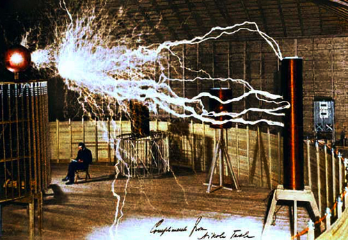 Reconstituire moderna a uneia dintre “masinariile” lui Tesla, prin care inventatorul a experimentat energia electrica alternativa