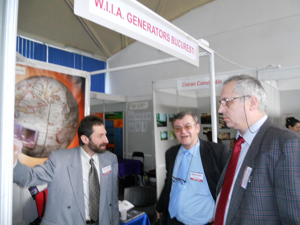 Inventatorii Justin Capra si Iordan Stavar, fosti colegi la Institutul de Cercetare si Proiectare pentru Industria Electrotehnica – ICPE – Bucuresti, discutand cu mare interes despre noile prototipuri aflate in stand-ul WIIA, Stimulator Anti – Diabet si Generator cu Reluctanta Comutata cat si despre noile tehnologi si tendinte ale inventicii.